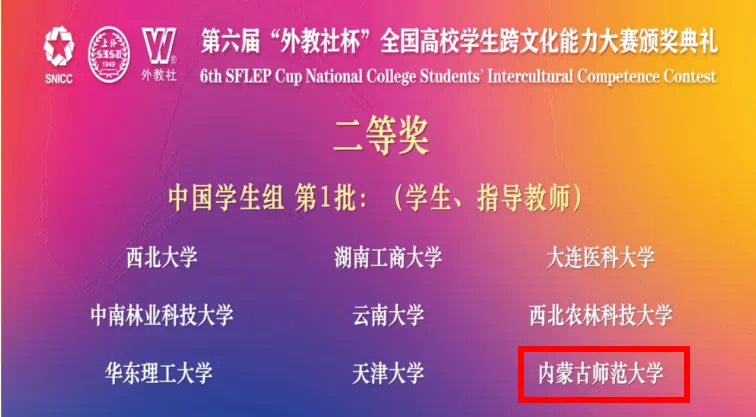 三位优秀学子在今年11月举办的第六届“外教社杯”全国高校学生跨文化能力大赛内蒙古自治区省赛中斩获特等奖,获得代表内蒙古自治区参加全国总决赛的资格。今年是我校首次入围此项比赛的全国决赛。
