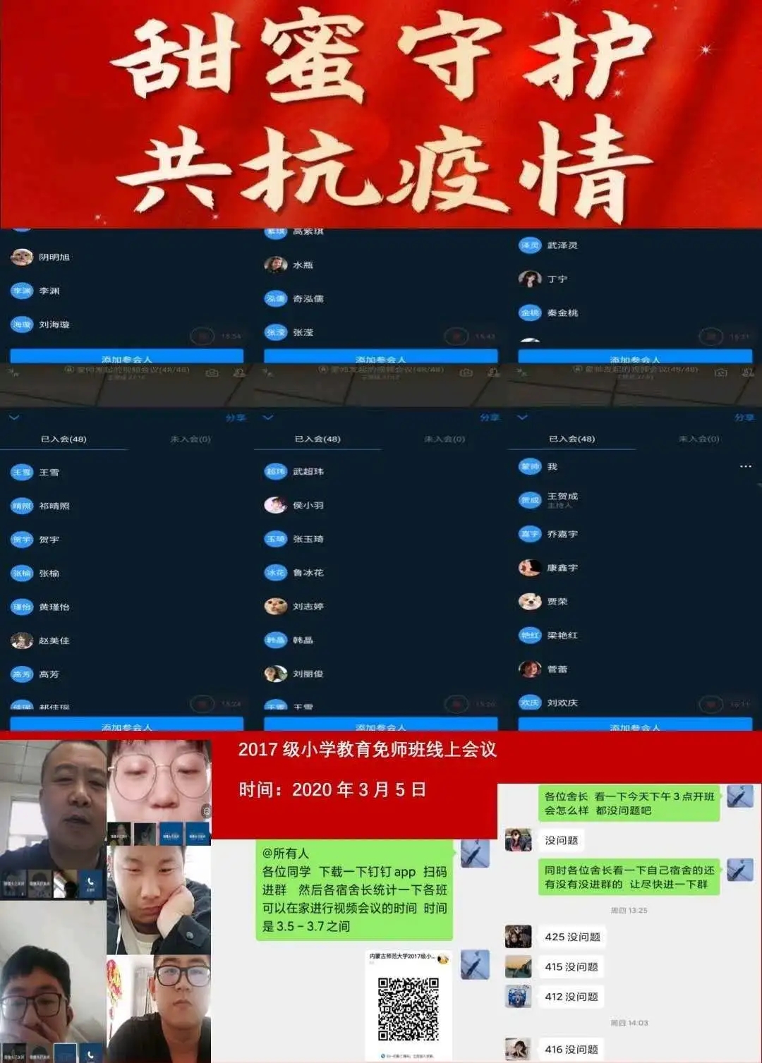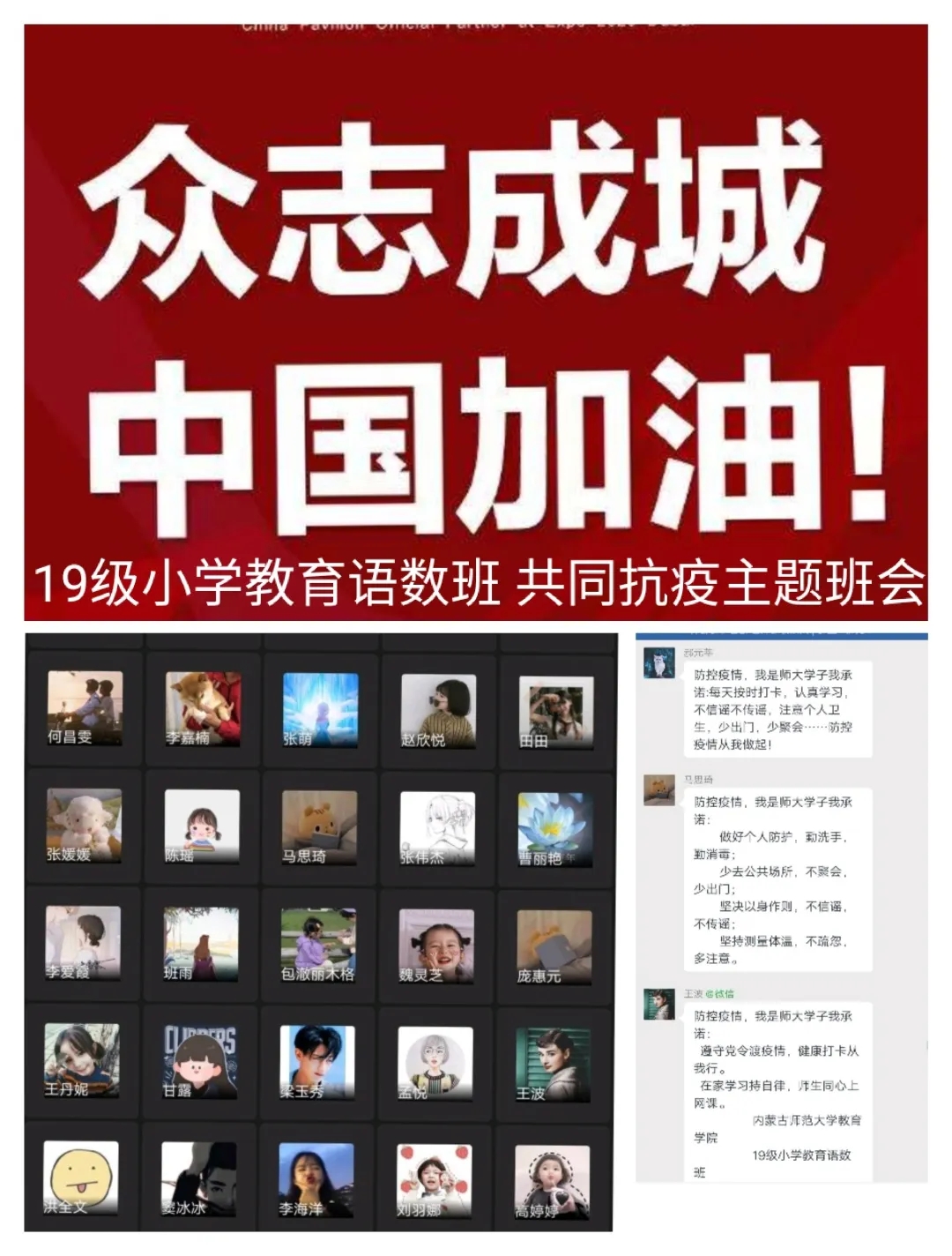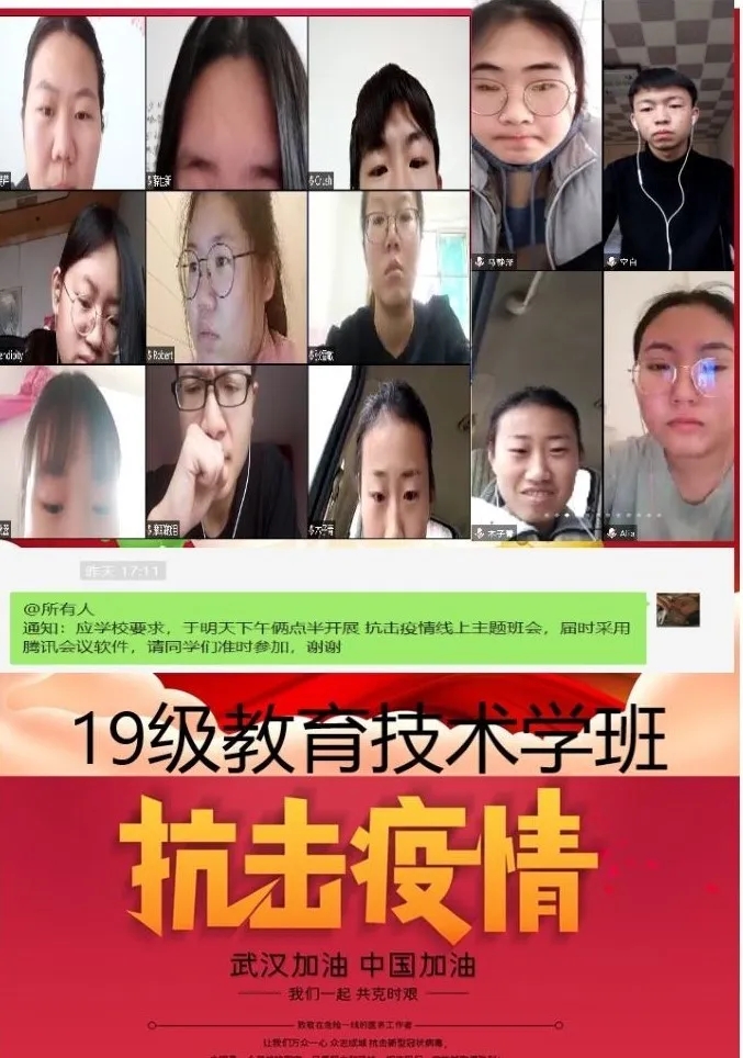 为深入贯彻落实习近平总书记关于打赢疫情防控阻击战重要指示批示精神,保障防控疫情期间“停课不停学”,充分发挥网络育人功能,根据自治区和学校有关工作部署,新葡萄88805官网各班级组织召开“共抗疫情,笃志前行”为主题的疫情防控线上班会。