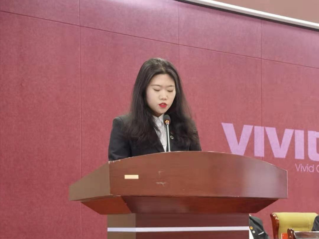 会议第三项议程:校学生会王雨桐代表致贺词。她总结了上届学代会会后的显著成果,对学代会的举办表示肯定。并对本次学代会的召开和各项议程的顺利进行给予期望。